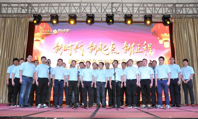 大會以播放短片的形式回顧了公司一年來的各項業(yè)務發(fā)展情況和取得的成績。副總經(jīng)理邰志東代表公司首先向全體人員致辭,而后在察右中旗烏蘭牧騎《時代贊歌》、《守望相助》的歌舞里拉開序幕。頒獎環(huán)節(jié),由22名優(yōu)秀行政管理人員、生產(chǎn)管理人員、生產(chǎn)服務人員、銷售人員和14個最佳效益獎、最佳質(zhì)量獎、最佳合作伙伴獎、優(yōu)秀團隊獎、董事長特別獎的獲獎代表上臺接受了公司各級領導的頒獎和祝賀。同時,原種生產(chǎn)管理中心、脫毒組培中心、原種生產(chǎn)管理中心、物流倉儲中心用《民豐之歌》和《民豐我們的家》兩首大合唱表達了對公司的贊美和熱愛之情。最后,大會在烏蘭牧騎《在你偉大的懷抱里》的舞蹈里走向高潮。表彰大會和文藝演出穿插進行,環(huán)環(huán)相扣,方式新穎,得到了全體員工的一致好評,也為即將開始的新春生產(chǎn)種植工作注入了活力,帶來了動力。